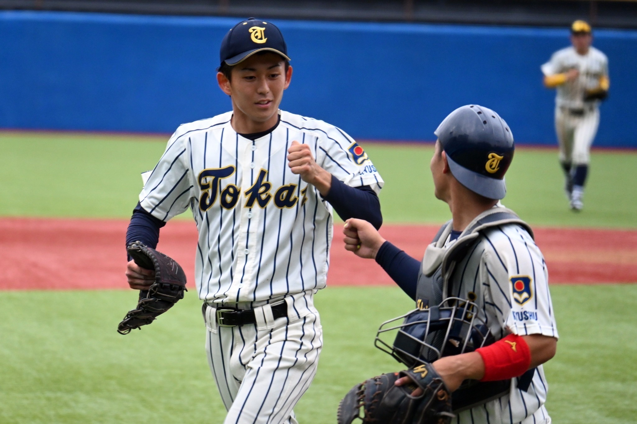 東海大九州キャンパス硬式野球部は九州地区を中心に関西や関東、東北の強豪高校からも選手が集まっているチームです。野球観の違う選手たちが切磋琢磨することで、良い刺激と化学反応の多きチームで、大学選手権全国制覇に向けて個々人が己と課題と向き合い、日々成長しています。